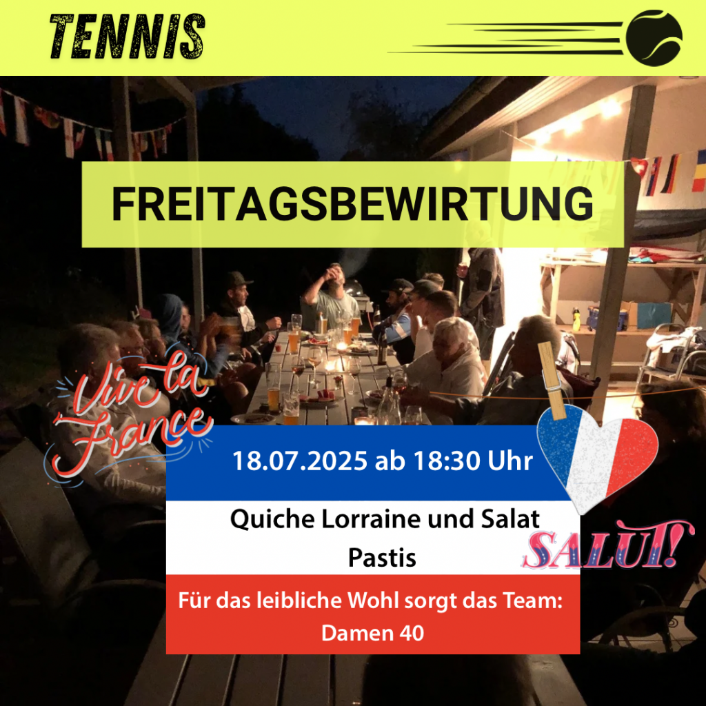 Freitagsbewirtungen der Teams: Herren, Herren 30, Hobby-Damen